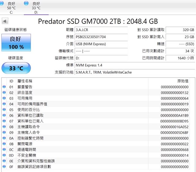 ◎硬體型號: Acer GM7000 2TB