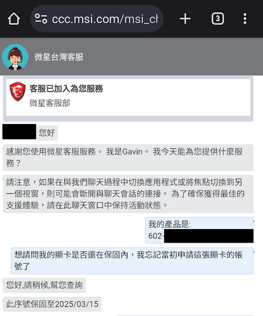 無購買證明、但有註冊保固。經詢問客服時間到2025/03/15