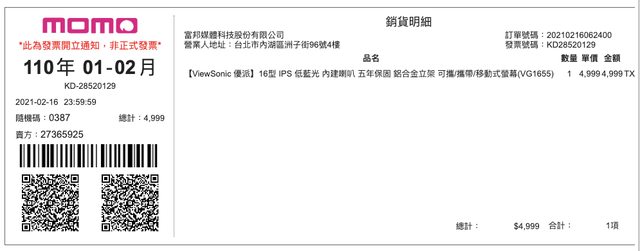 ◎硬體型號: ViewSonic VG1655 可攜式螢幕(16吋/FHD/HDMI)