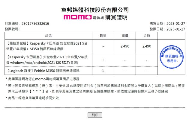 ◎品樣狀況: 全新,於2023/1/27購買防毒軟體的贈品,原廠保固一年