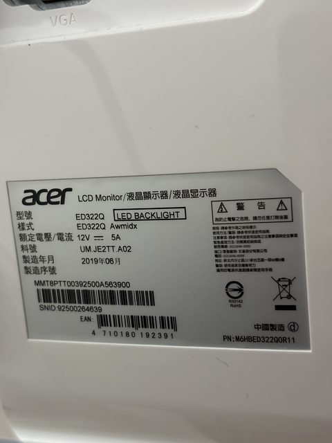 標題[賣/高雄/面交] Acer ED322Q 32吋曲面螢幕