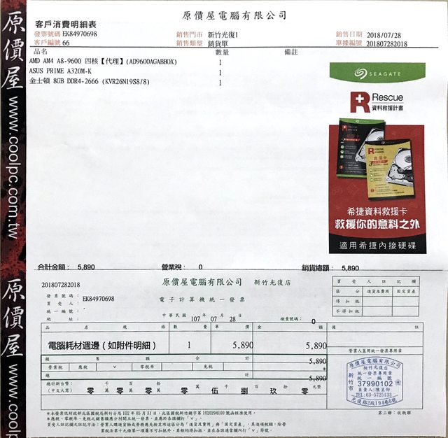 金士頓記憶體我記得是終生保固,其他的都已過保,發票也都不見了。
