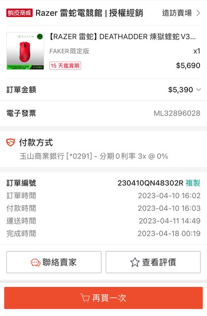 原品2023/04/10購買自蝦皮雷蛇授權經銷