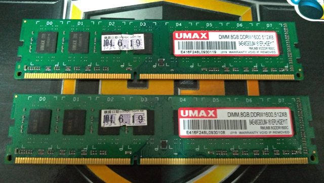 3、UMAX DDR3 1600 8G X2 售出
