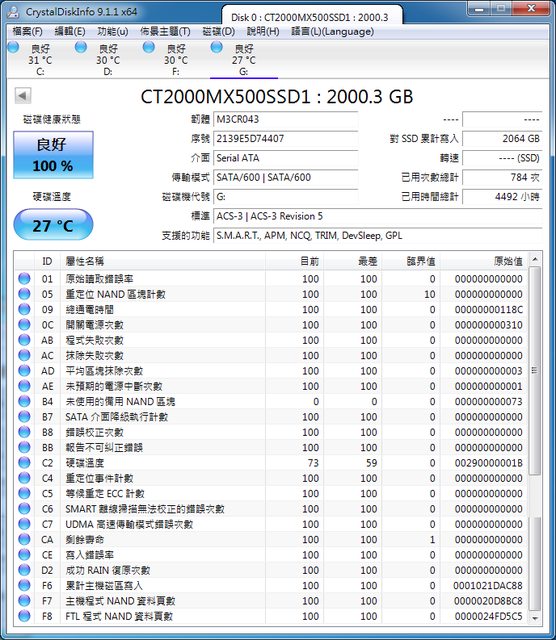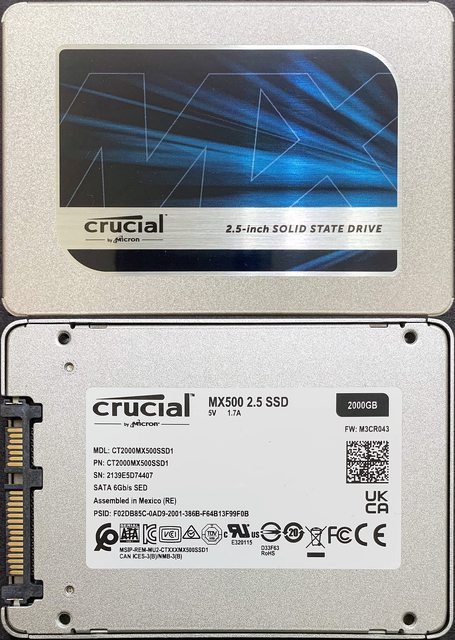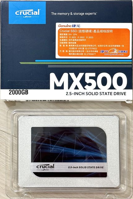 ◎硬體型號: 美光Mircron Crucial MX500 SSD固態硬碟,2TB,SATA 2.5"