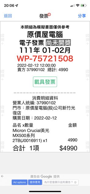 標題[賣/新竹/皆可] 美光Micron MX500,2TB