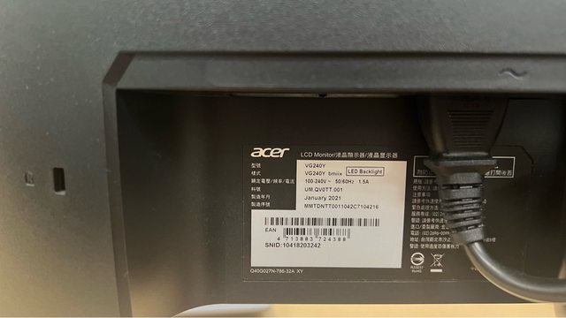 ◎硬體型號: Acer VG240Y 螢幕
