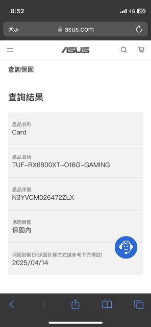 ◎硬體型號:asus tuf 6800xt o16g gaming ◎欲售價格:9000 ◎品樣狀況: 2022/10/16原價屋購買 目前保固到25/4 已申請更新保固至25/10 升級換下 盒裝完整會一併寄出 ◎佐證資料: