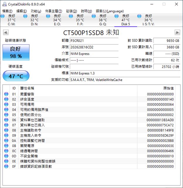 ◎硬體型號: 美光 P1 500GB M.2 SSD Micron Crucial 固態硬碟 500G