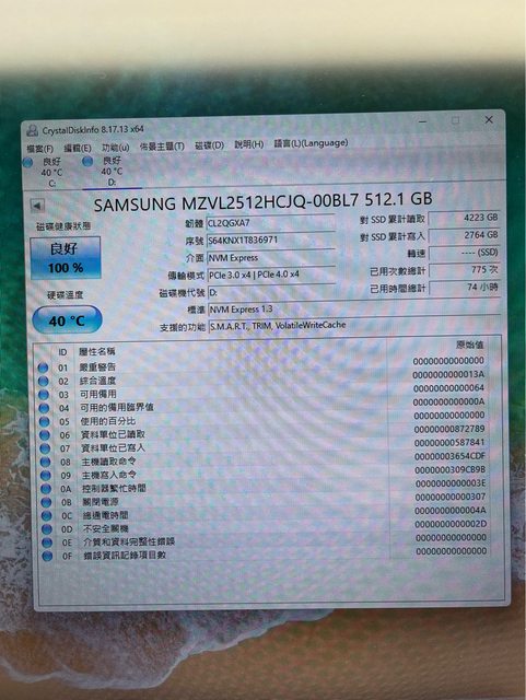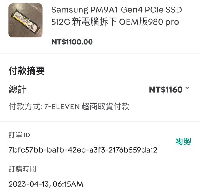 1. 2023/4於旋轉拍賣購入二手品,筆電拆機品故無盒裝及保固,此為PCIE 4.0版本。