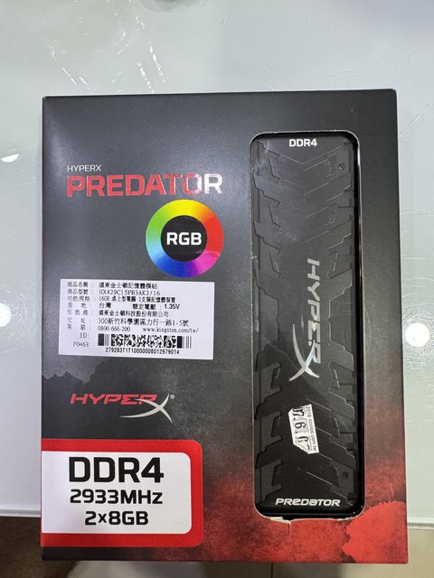 標題[賣/台南/皆可] 金士頓 8G*2 RGB DDR4-2933可OC