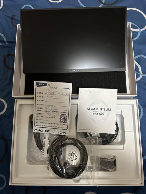 4.配件完整性: 螢幕+原廠皮套+電源線+變壓器+HDMI to mini HDMI線 + usb-c to usb-c線(未使用過)