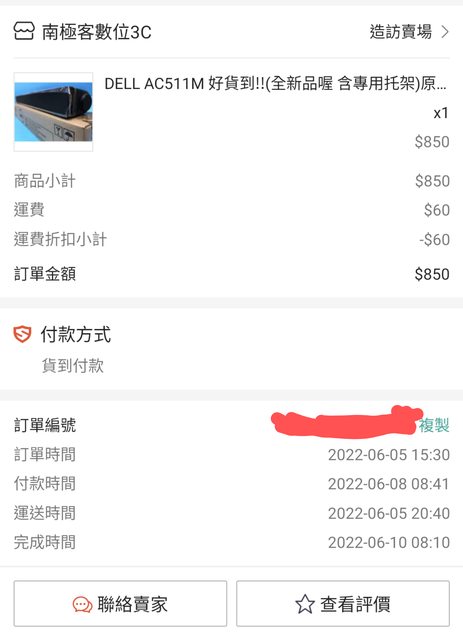 ◎硬體型號: Dell AC511M