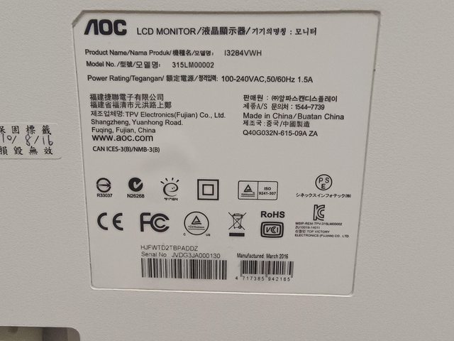 ◎硬體型號: AOC I3284VWH 32吋 IPS寬螢幕
