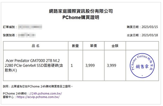 2.Acer Predator GM7000 2TB 含散熱片