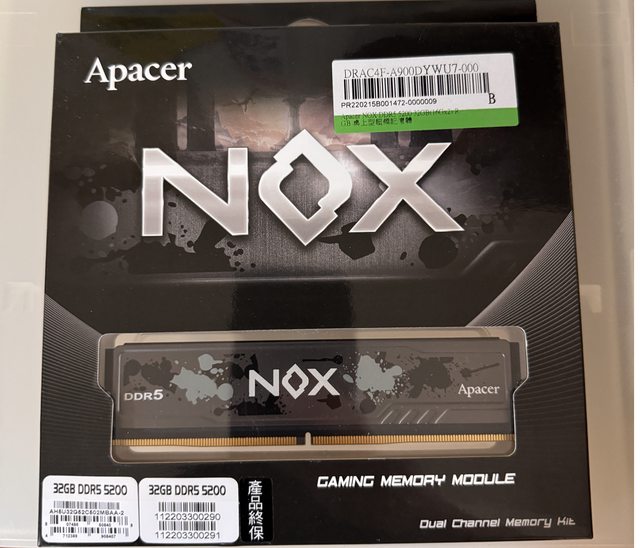 3.Apacer NOX DDR5 5200 32GB (16GBx2)