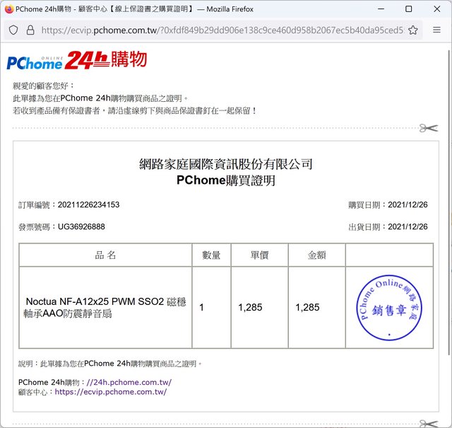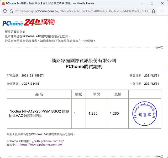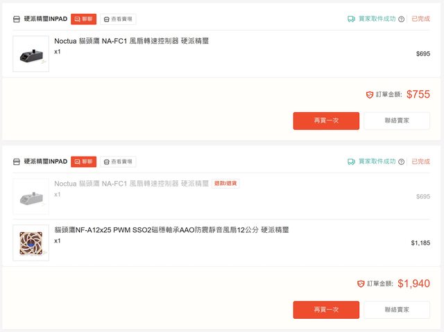 1. Noctua NF-A12x25 PWM SSO2 磁穩軸承AAO防震靜音扇(PChome) 2個