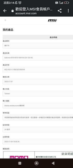 標題[賣/全國/寄送] RTX4070 MSI Ventus2X