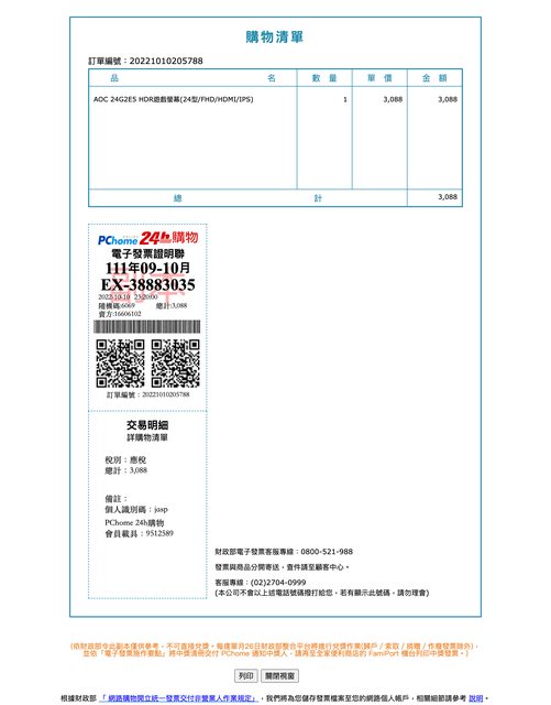 1. 2022/10 PChome 購入, 三年保