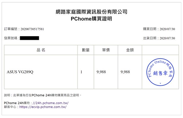 1.2020/7/30 PChome購入,使用至最近無亮暗點。升級螢幕出清,已過保。
