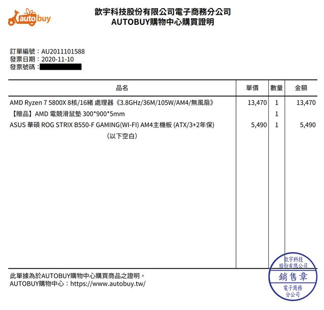 2.B550F 2020/11/10 Autobuy購入,使用至2021/8因升級59X+太極退役,已過保。