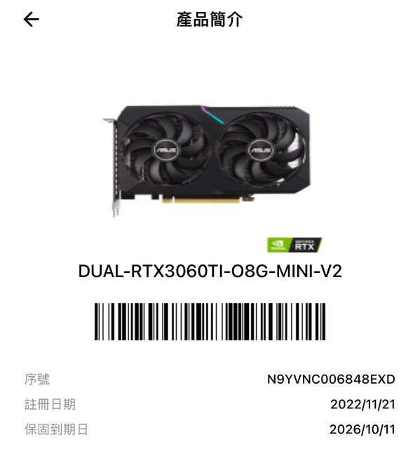 顯示卡:ASUS dual -RTX3060Ti-O8G-MINI-V2