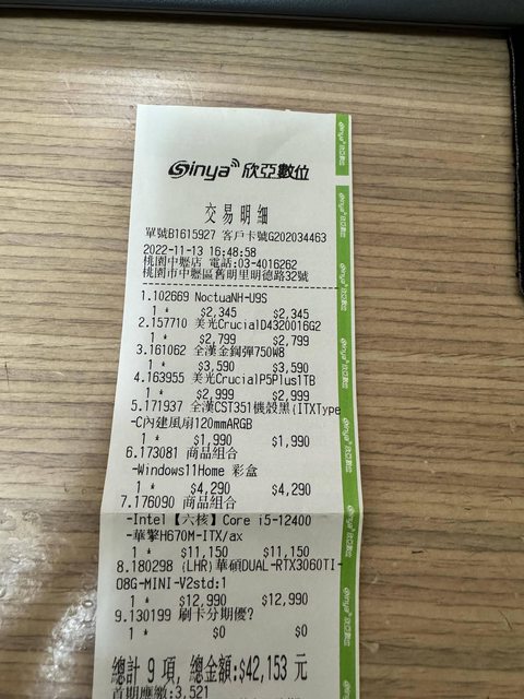 1.主機於2022/11 於中壢欣亞購買組裝,使用期間有自行購買記憶體及在硬交版上收SSD來