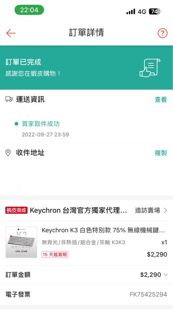 2022-09-27 購於蝦皮 keychron官網,已過保