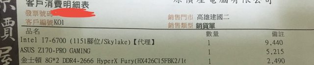 標題[賣/高雄/皆可] I7-6700+Z170PG+DDR4