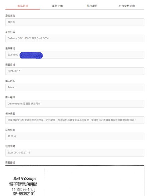 ◎硬體型號: (售出)MSI GTX 1050Ti AERO 4G OC