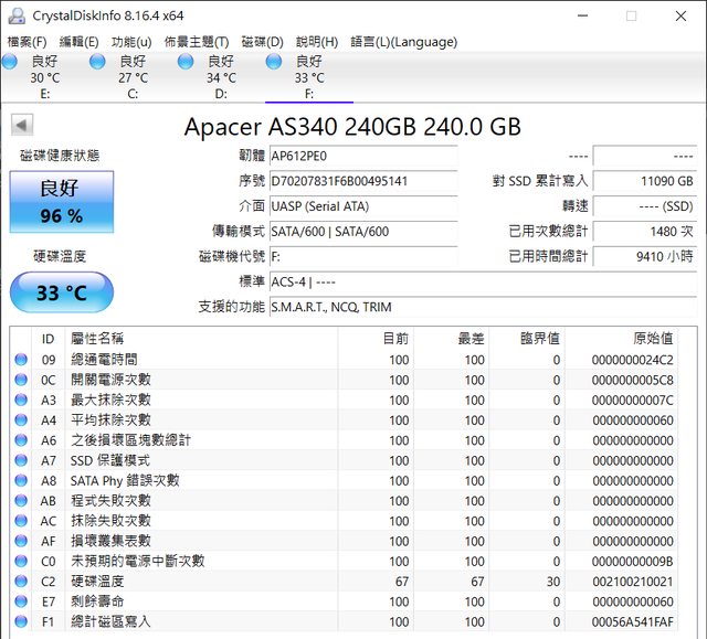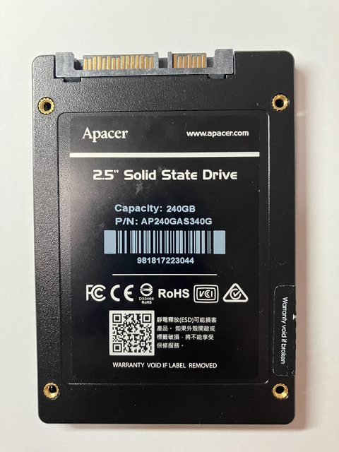 3.Apacer AS340 240G 2.5吋 SSD 有1顆