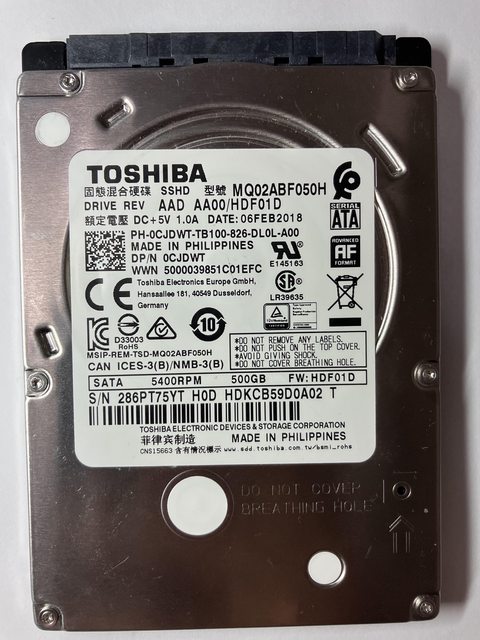 2.Toshiba 固態混合硬碟 SSHD 500GB 2.5吋 有1顆