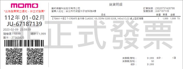 1. T-Create Classic DDR4-3200 32G(16G*2)