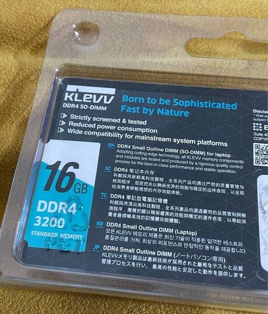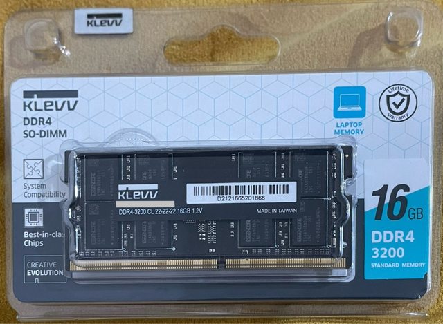 ◎硬體型號:KLEVV 科賦 DDR4 SO-DIMM 3200 16GB