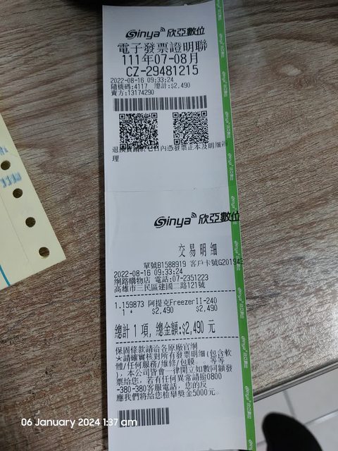 28/8/7。提供發票照片。