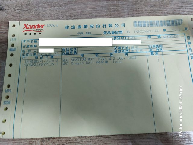 保固至2028/8/7。提供發票照片、MSI贈品寄來時的領用簽收單照片。