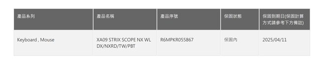 兩把都RMA回來全新未用,羅技無保固,ROG保固到25/4