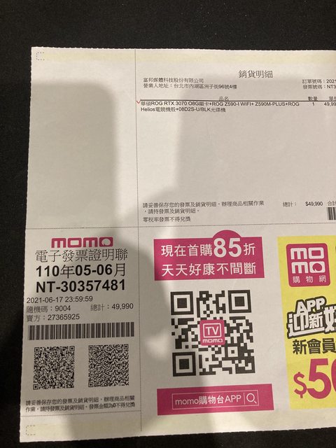 1. 購買日期2021/6 保固至2026/6 非礦卡 外觀盒裝完整 有紙本發票
