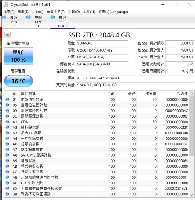 標題[賣/全國/皆可] ssd sata 2tb leven js600