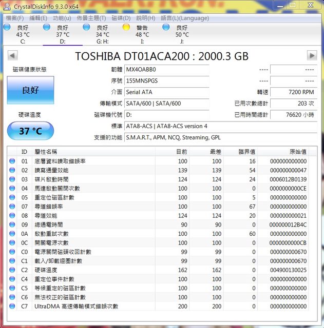 ◎硬體型號: 東芝2TB桌面機械硬碟