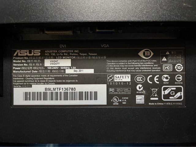 ◎硬體型號: ASUS VW247T 24吋電腦螢幕