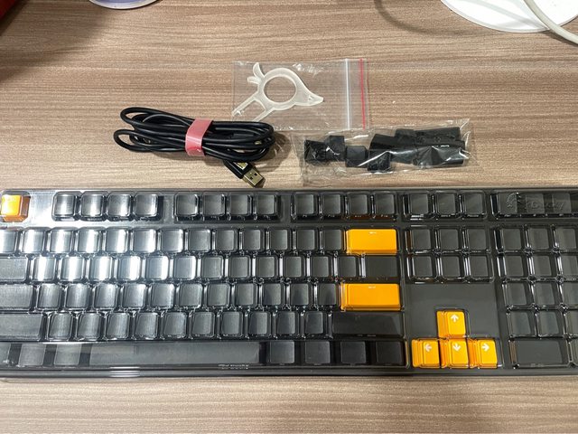 剛買就換上附的橘色鍵帽,故換下來的黑色鍵帽幾乎沒用過