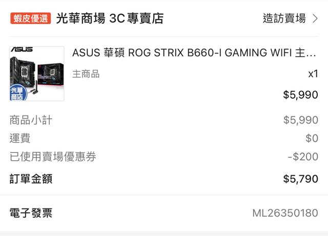 標題[賣/台南/皆可] 華碩B660i itx主板+宏碁DDR5 32g