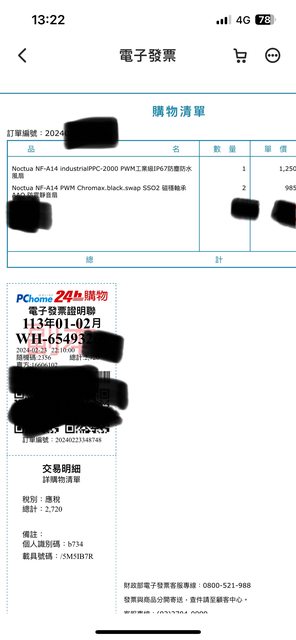 ◎硬體型號:Noctua貓頭鷹NF-A14 Chromax PWM風扇 兩顆