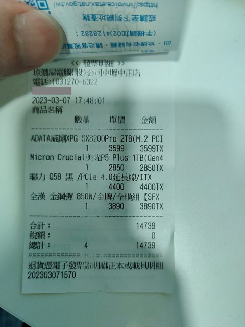 1. 2023-03-13原價屋購買,保固至2026-03-29,正常使用,原廠散熱器、盒裝還在。 2. 2023-03-16原價屋購買,官網註冊5年保,後IO擋板買來就有點斜斜的,裝上機殼會有一 角 落0.1mm縫隙,正常使用,配件、盒裝還在。 3. 2023-03-13原價屋購買,7年保,風扇rgb對接線有壓痕,目前皆正常運作,盒裝還在。 4. 機殼2023-03-07原價屋購買,網板跟燈條2023-02-22蝦皮購買,皆過保,燈條已裝機殼 內,機殼正常使用痕跡,機殼配件完整,盒裝皆在。 5. 2023-03-16原價屋購買,終身保,散熱片有些許刮痕和氧化,在意請不要買,正常使用 ,盒裝還在。