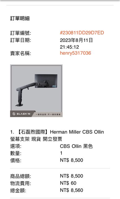 標題[賣/台中/面交] herman miller ollin螢幕支架