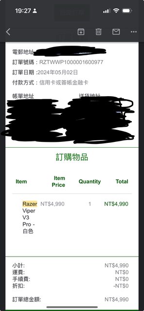 標題[賣/台中/皆可] razer viper v3 pro白色