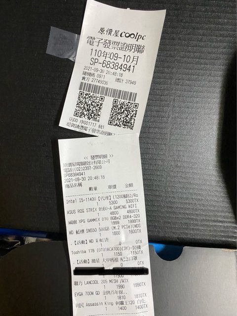 cpu:i5 11400 (2021-09-30原價屋購買)