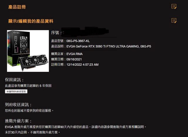 vga:evga rtx3060ti ftw3 (保固至2026-09-16)