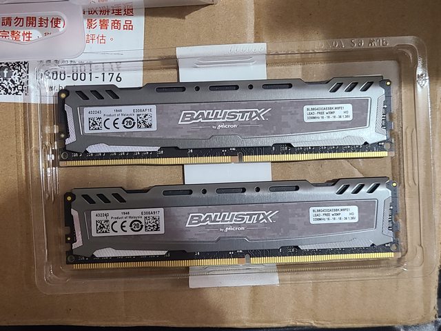 ◎硬體型號: 1.美光Ballistix DDR4-3200 CL16 (8G*2/組)灰